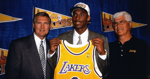 In 1996, Kobe Bryant got drafted by the Charlotte Hornets with the 13th pick, which broke Andrew Bynum’s world record and became the youngest player to play in an NBA game.